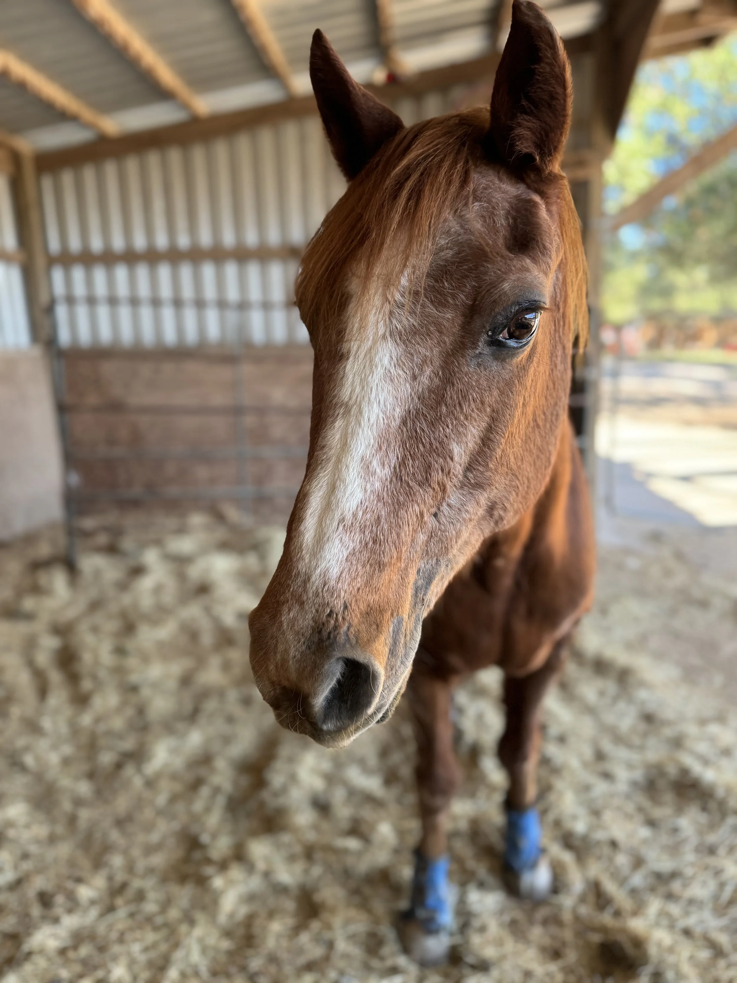 Whisper is the bold boss mare of our herd—tall, noble, and full of spirit. Recently retired from her lesson duties, this once fast-and-furious queen ruled the arena in her prime. Now, with occasional arthritis flare-ups, she’s looking for a loving home where she can enjoy gentle days, plenty of affection, and all the spa treatments she adores. Whisper is currently up for adoption and ready to be cherished in her well-earned retirement.