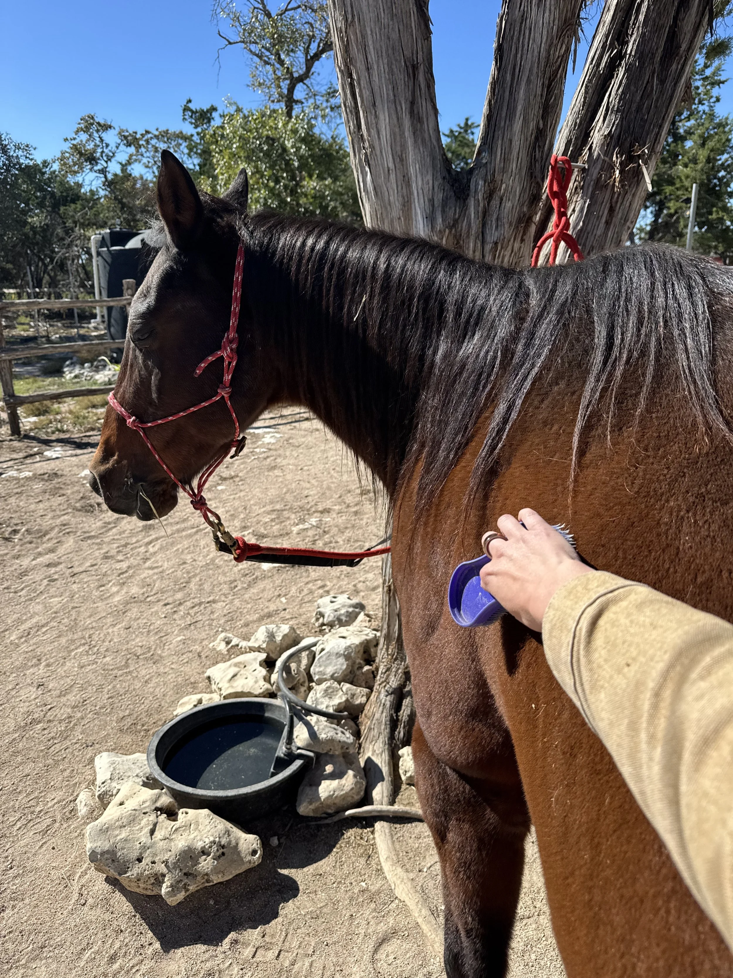 Romeo arrived about a year ago after being rescued from a kill pen, and this old cowboy horse has been stealing hearts ever since. He loves a good scratch, carries himself with gentle wisdom, and is easily the most handsome boy on the property. With his soft eyes and steady spirit, he’s a reminder of just how special a second chance can be.