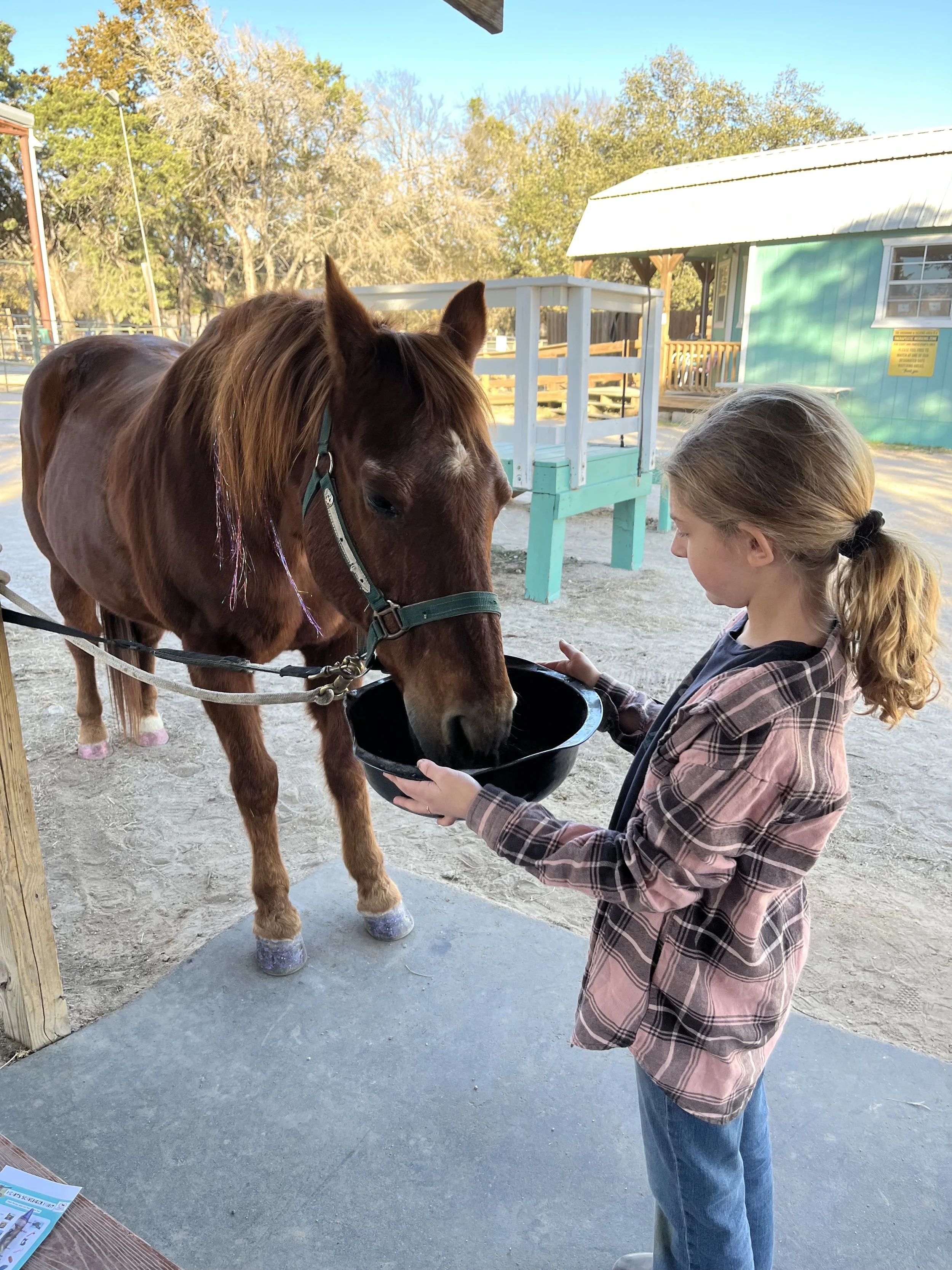 At Hearts, our horses receive the highest standard of care, ensuring they stay healthy, happy, and ready to do the meaningful work they love. Each horse is given supplements tailored to their individual needs, kept on a strict maximum ride limit each day, and regularly groomed to keep them looking and feeling their best. They’re also seen routinely by our trusted vet and farrier team to maintain their overall health. Many of our horses are rescues, and with that comes additional time, attention, and rehabilitation to help them heal and thrive. And of course, every horse ends their day with a well-earned carrot to say “thank you” for a job well done. We’re always looking for wonderful horses to join our herd—if you’re considering donating a horse, we’d love to hear from you!